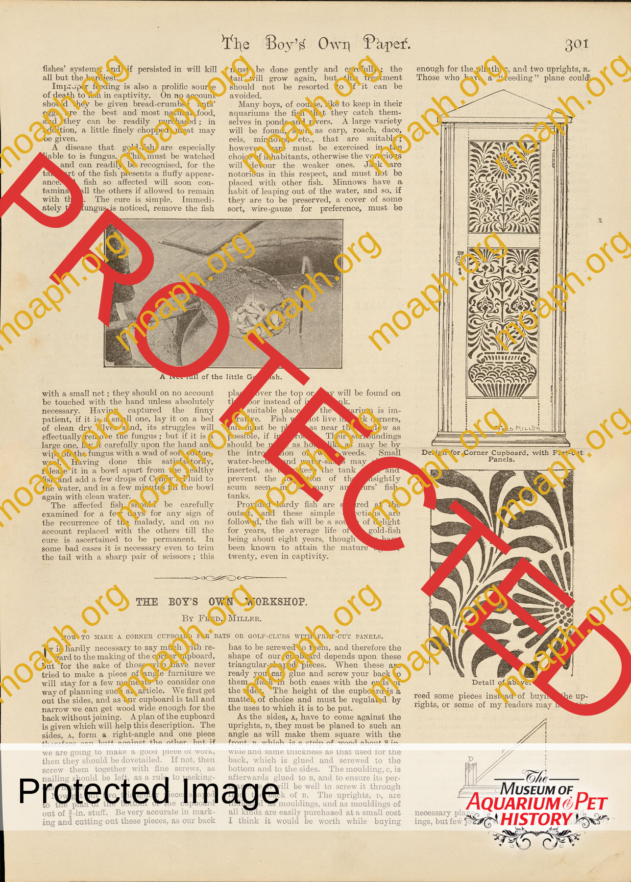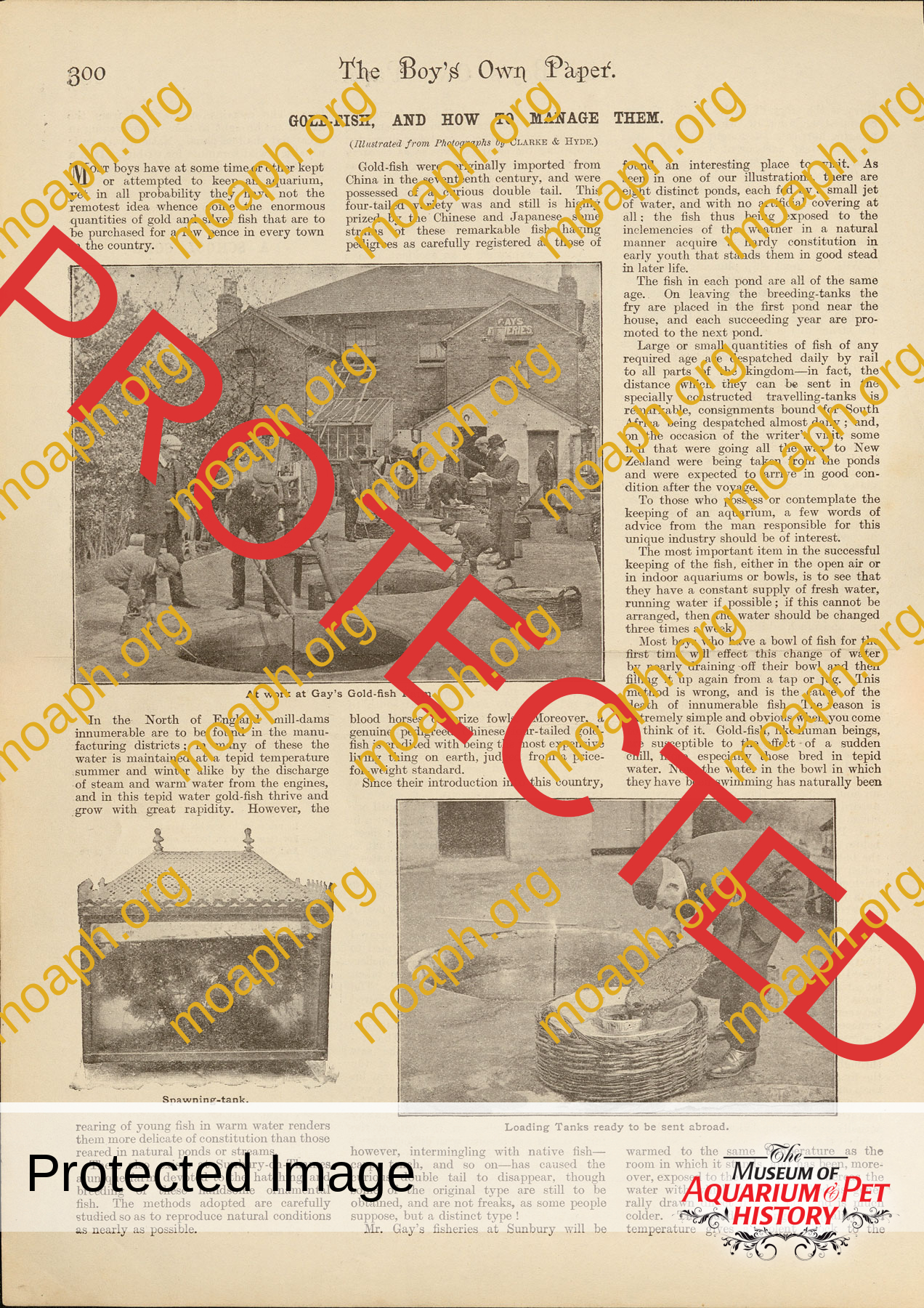 This is yet another one hundred plus year old article on Gay’s Gold-Fish Farm in England showing how they kept and transported (metal shipping cans) goldfish. Check out the Victorian era aquarium picture.