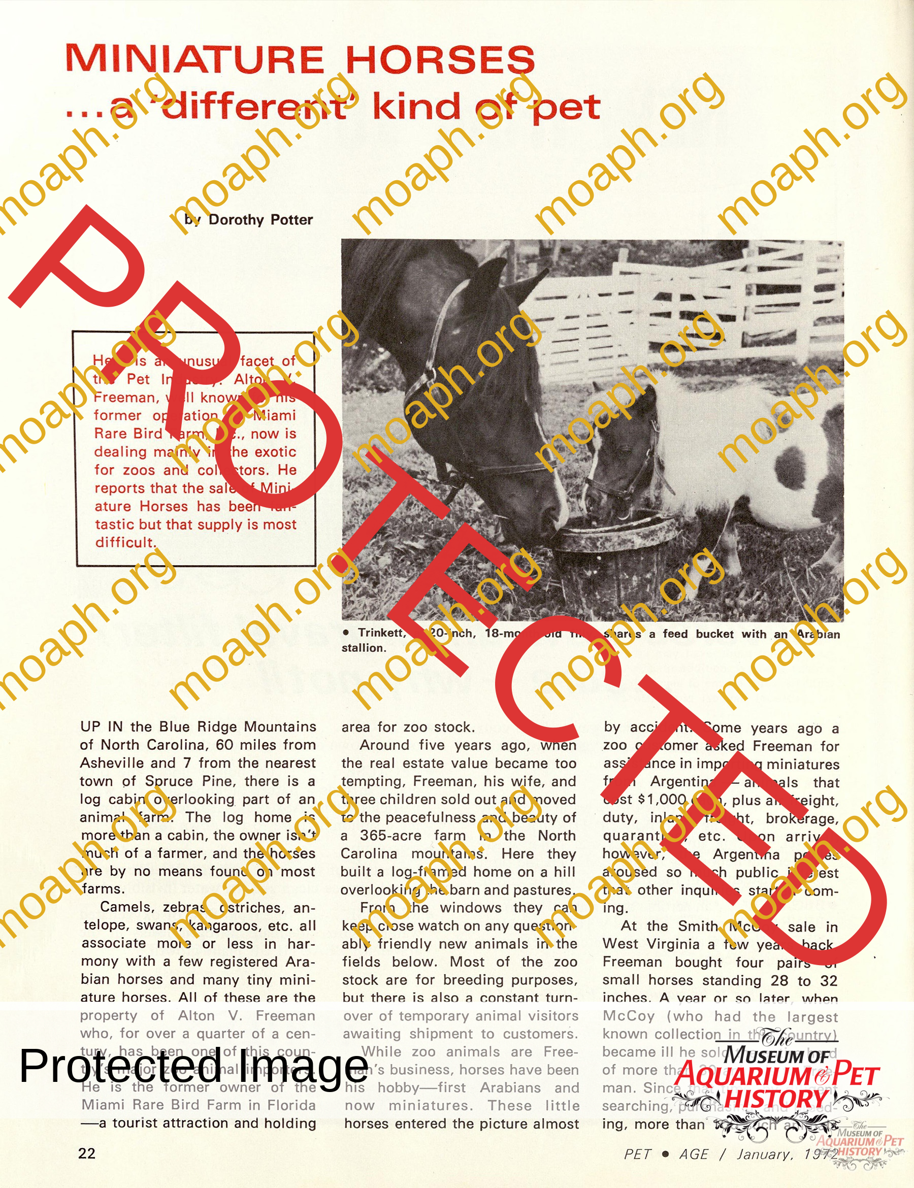 Article from the January, 1972 edition of Pet Age magazine.