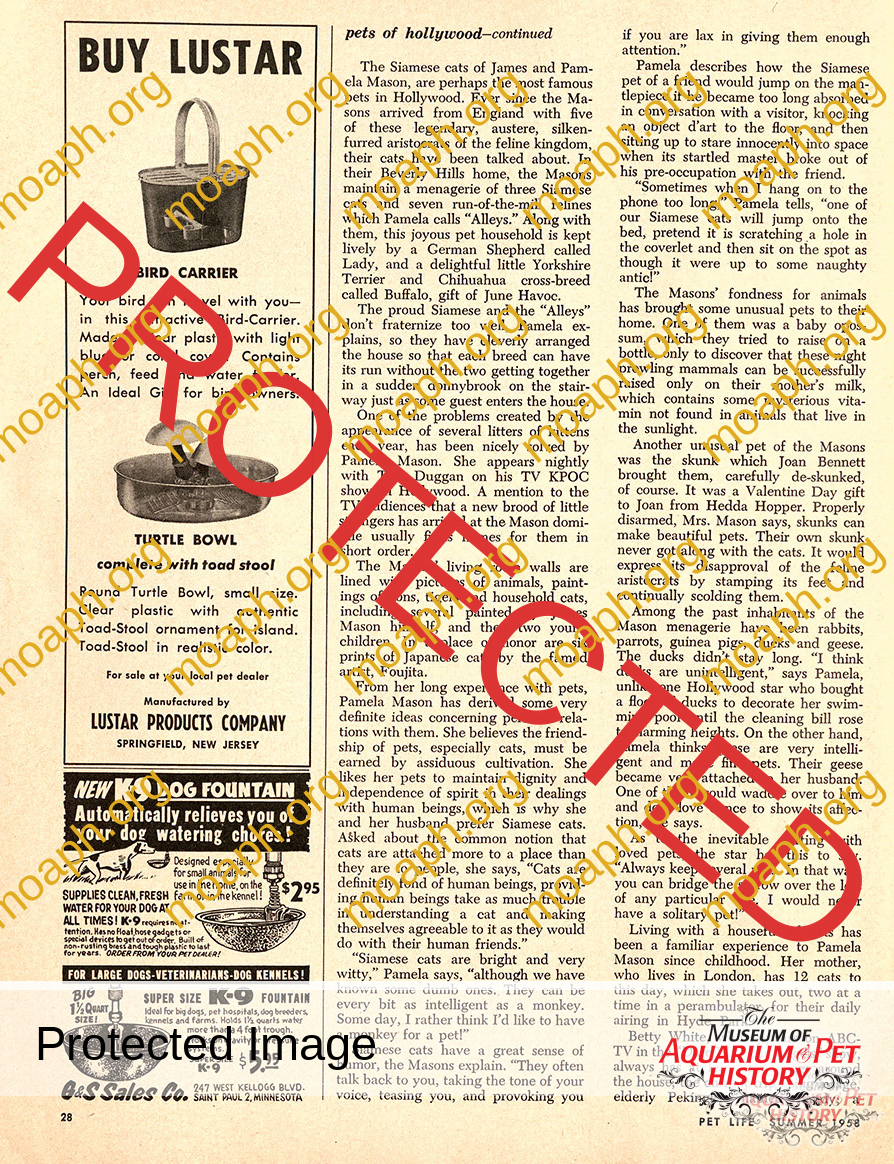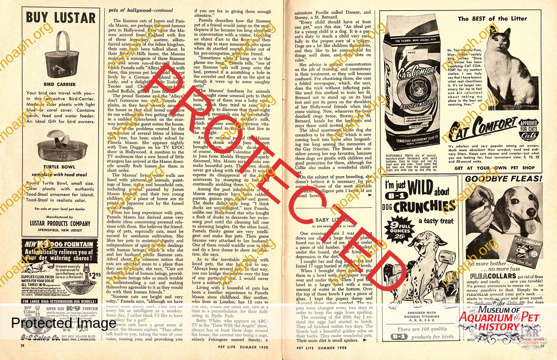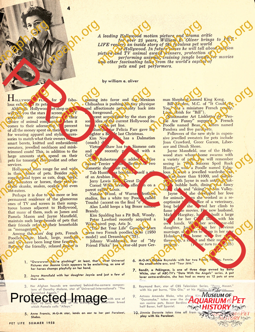 A window into some of the unusual pets celebrities of the 1950s had. Some stars went as far as to have skunks, ocelots, and anteaters! Also interesting to note that Betty White was quoted in this 1950s article, and she remained an avid animal lover until her death in 2021.