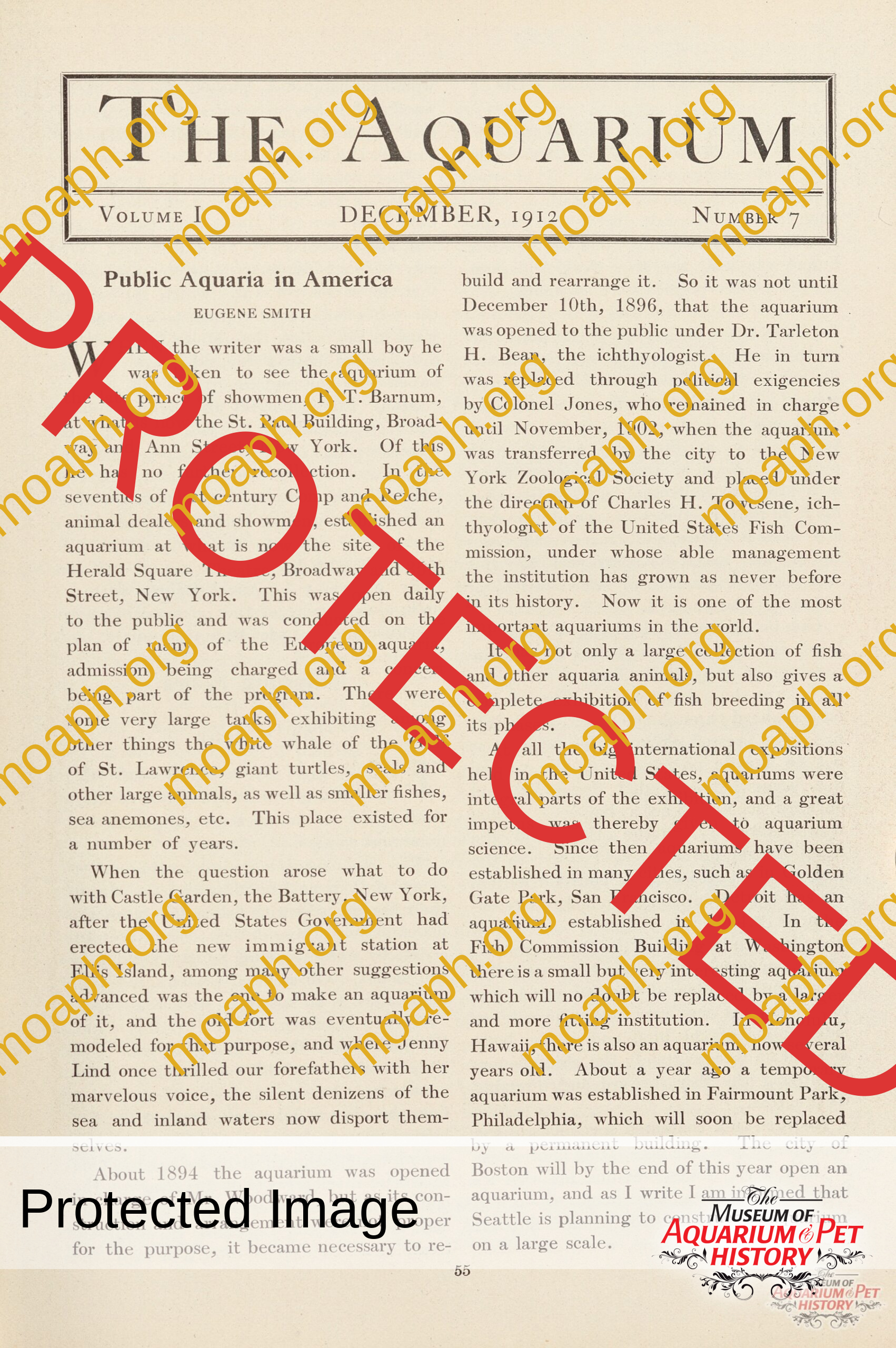 Public Aquaria in America by Eugene Smith Printable Version of Article Article originally from December 1912 edition of The Aquarium.