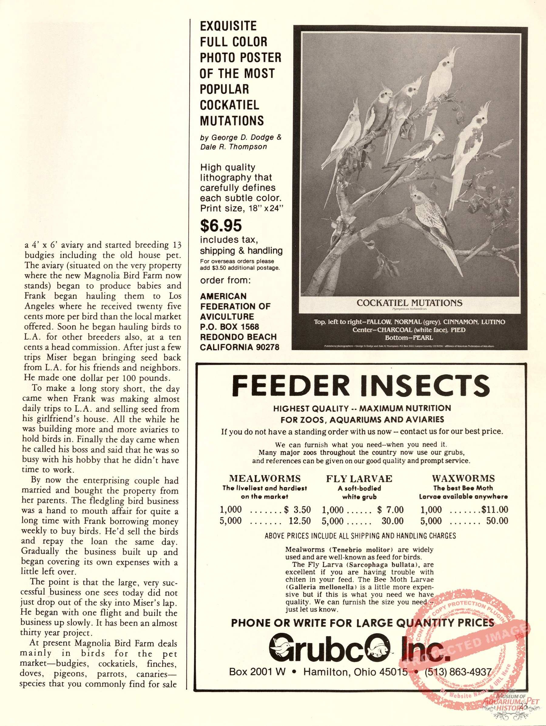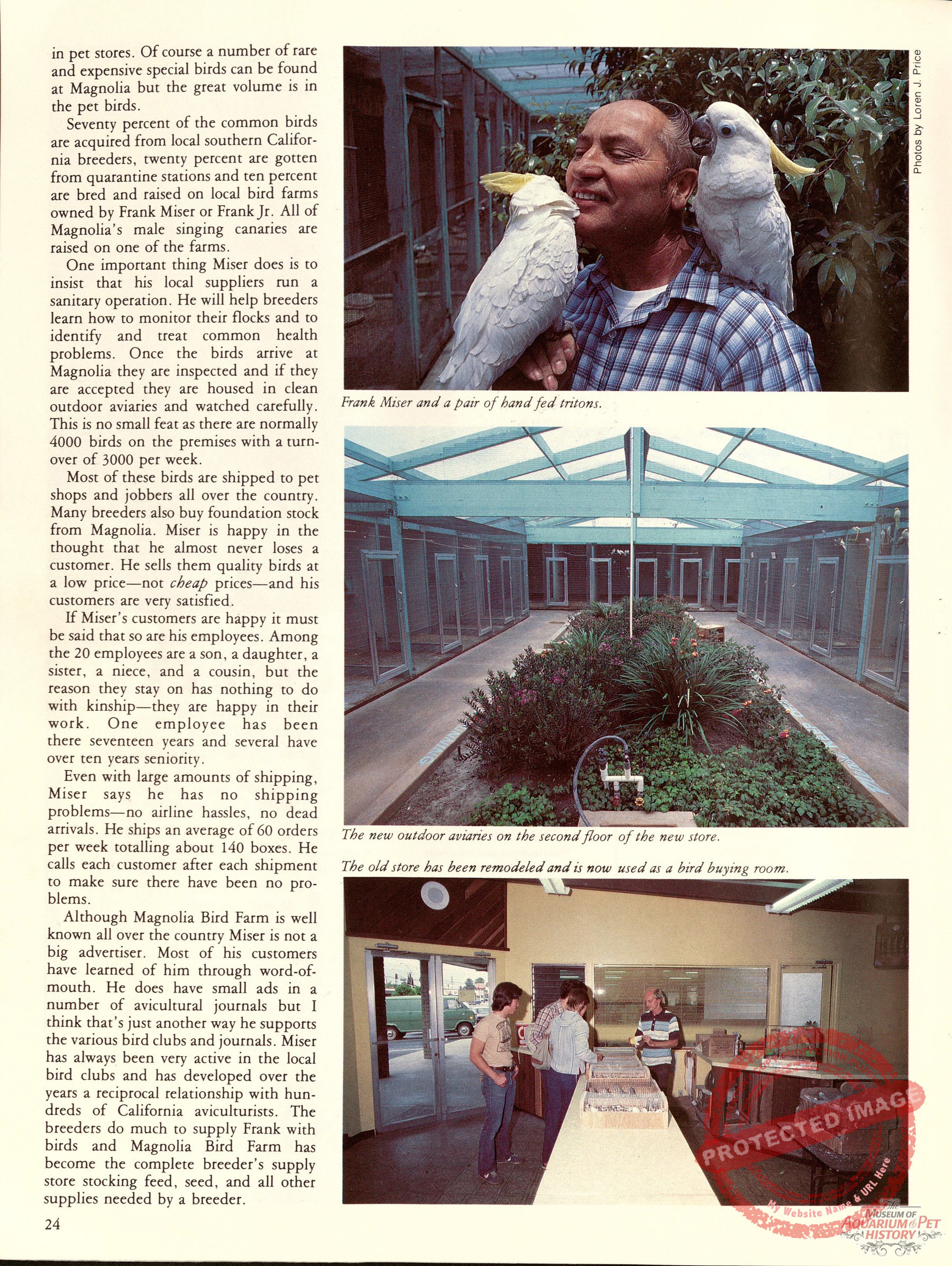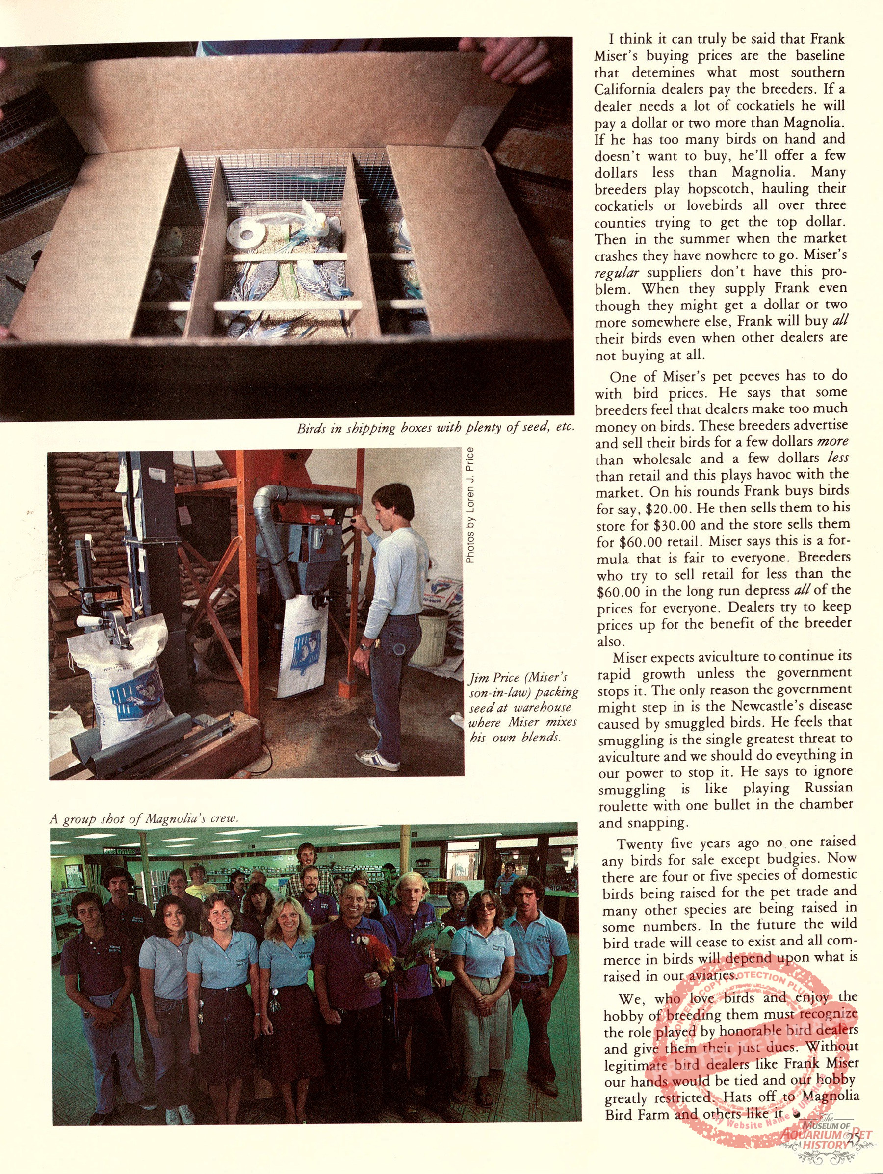 Last month we interviewed Frank Miser, who still comes to work every day at 100 years old! This article from the December-January 1983 edition of AFA Watchbird Magazine shares a look at the business as it was in the 1980s.