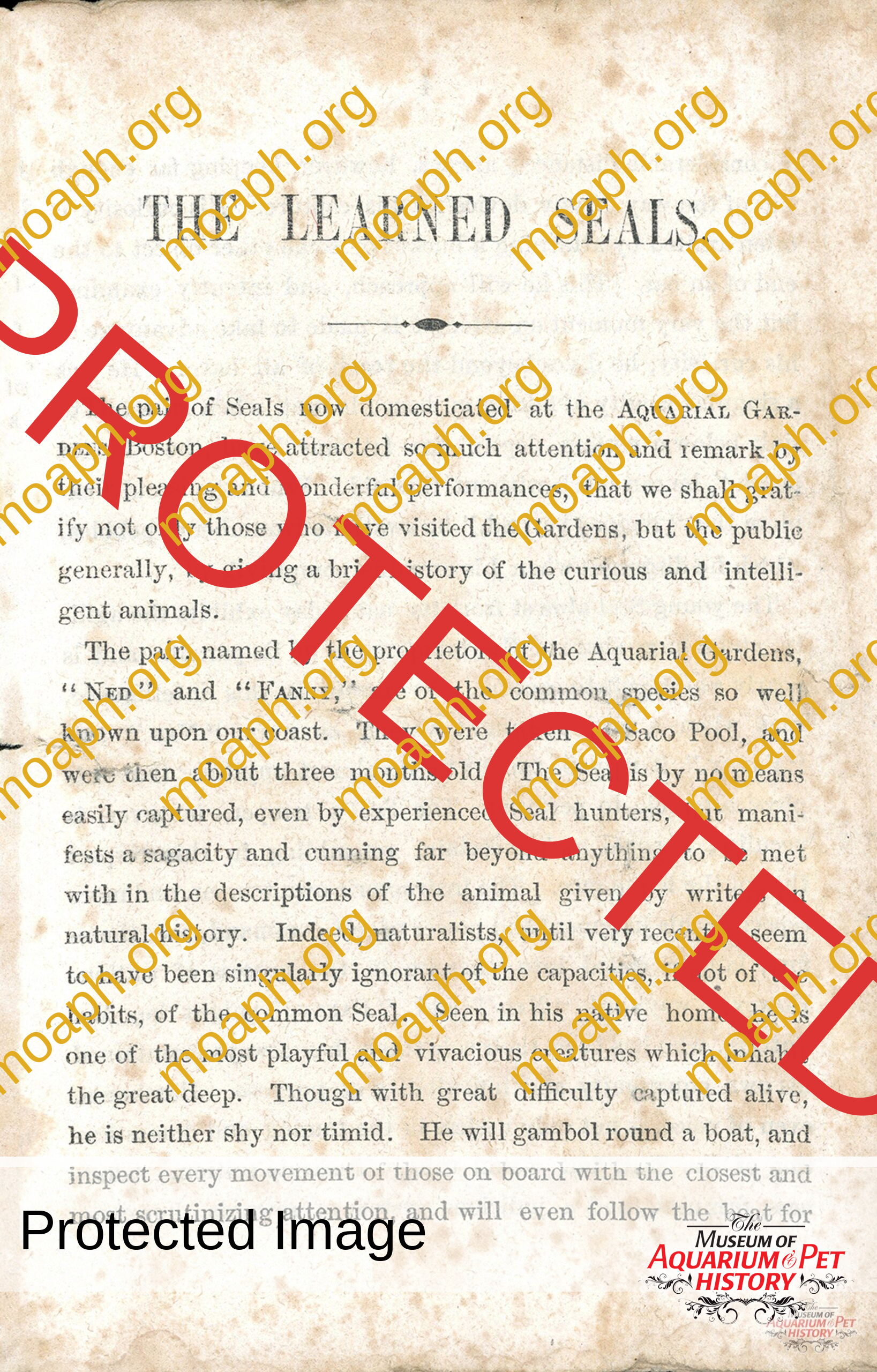 The Domestic History of the Learned Seals, “Ned” and “Fanny” at the Boston Aquarial Gardens