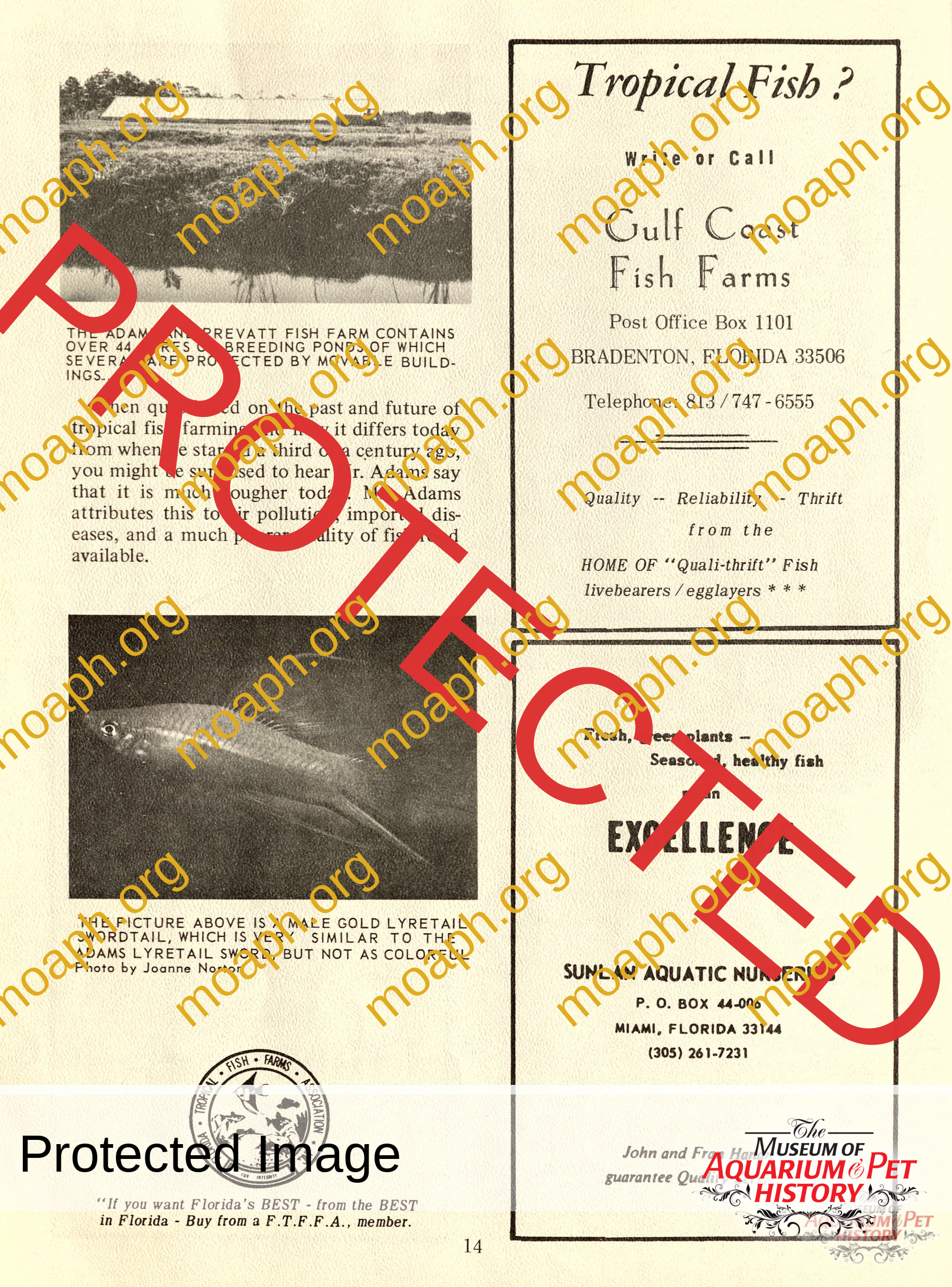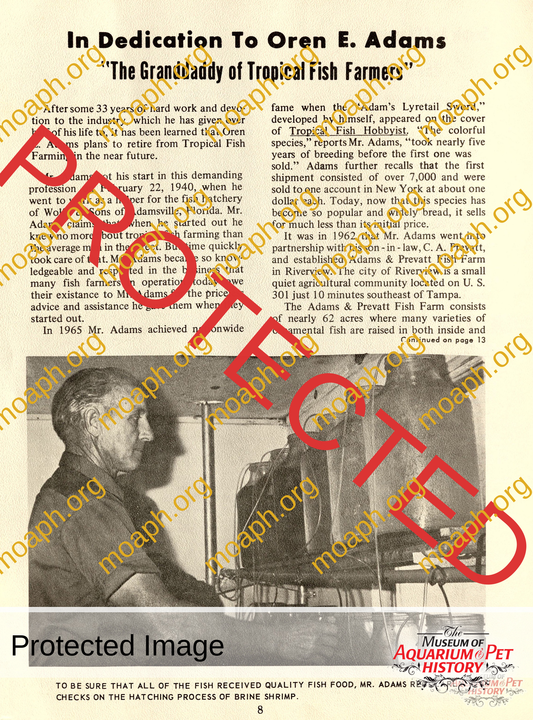 The Granddaddy of Tropical Fish Farmers – From the Publication of the “Trader”, Florida Tropical Fish Industries Printable Version of Article Oren E. Adams developed the first lyretail sword tropical fish, which appeared on the cover of Tropical Fish Hobbyist magazine. From the April 1973 edition of Trader Florida Tropical Fish Industries.
