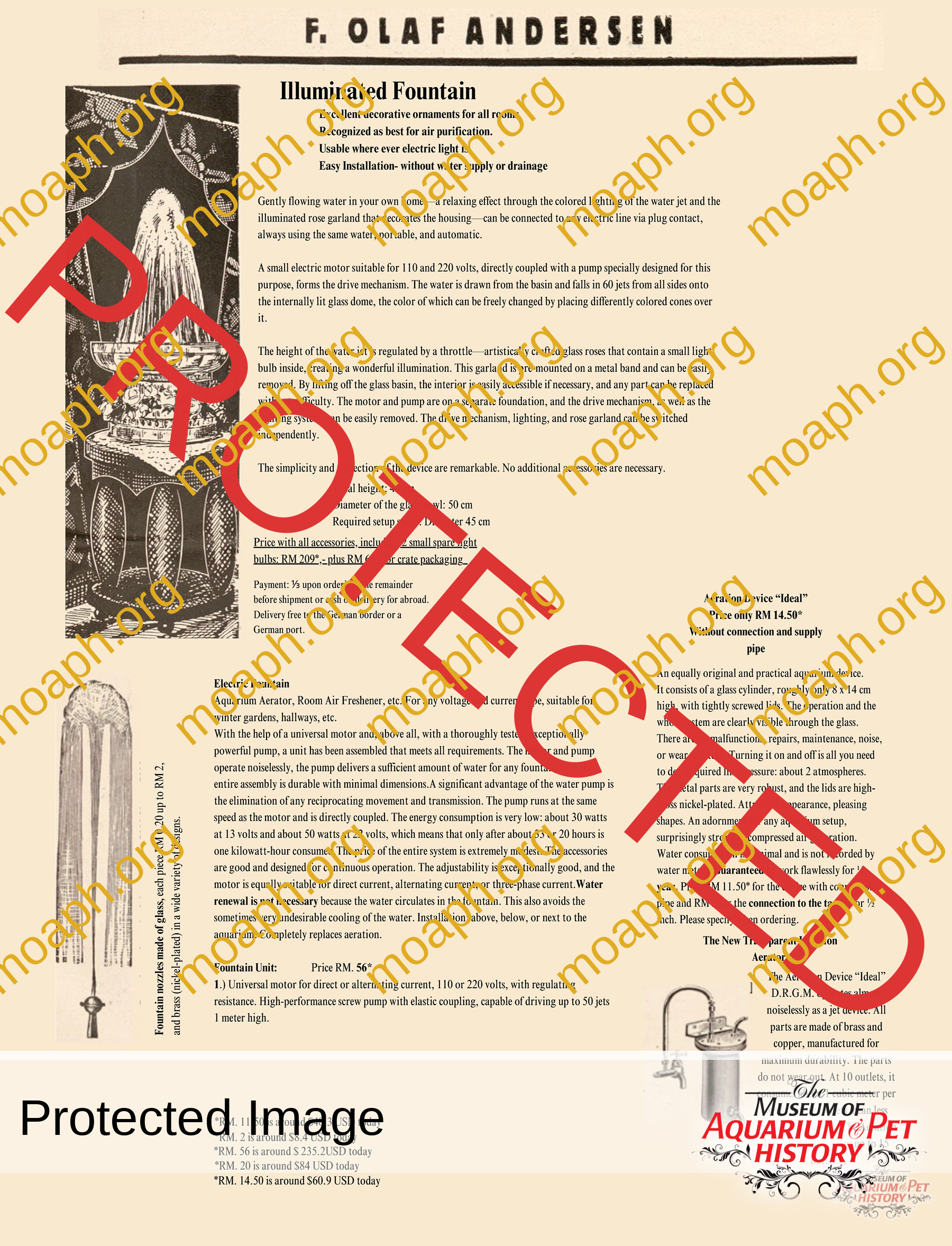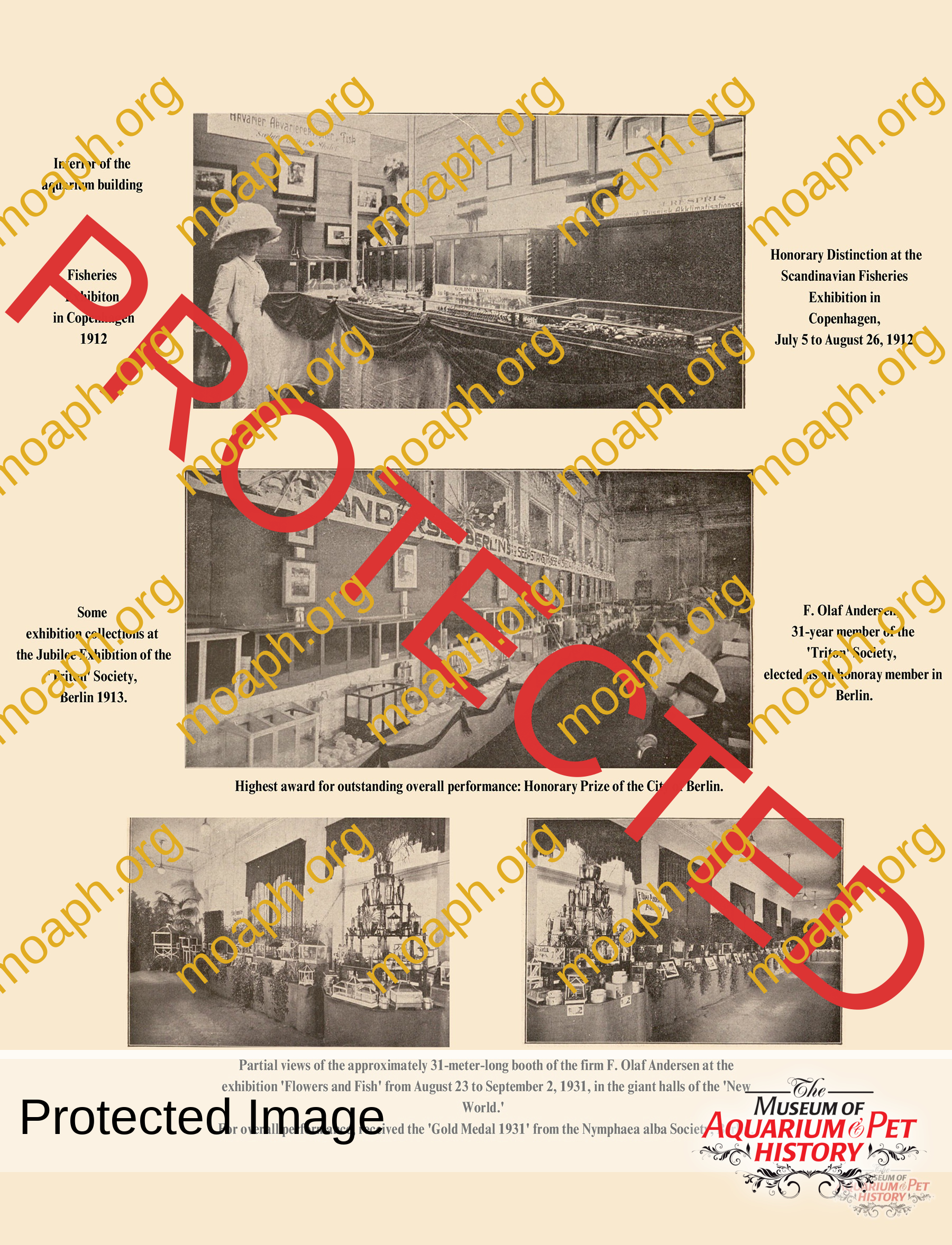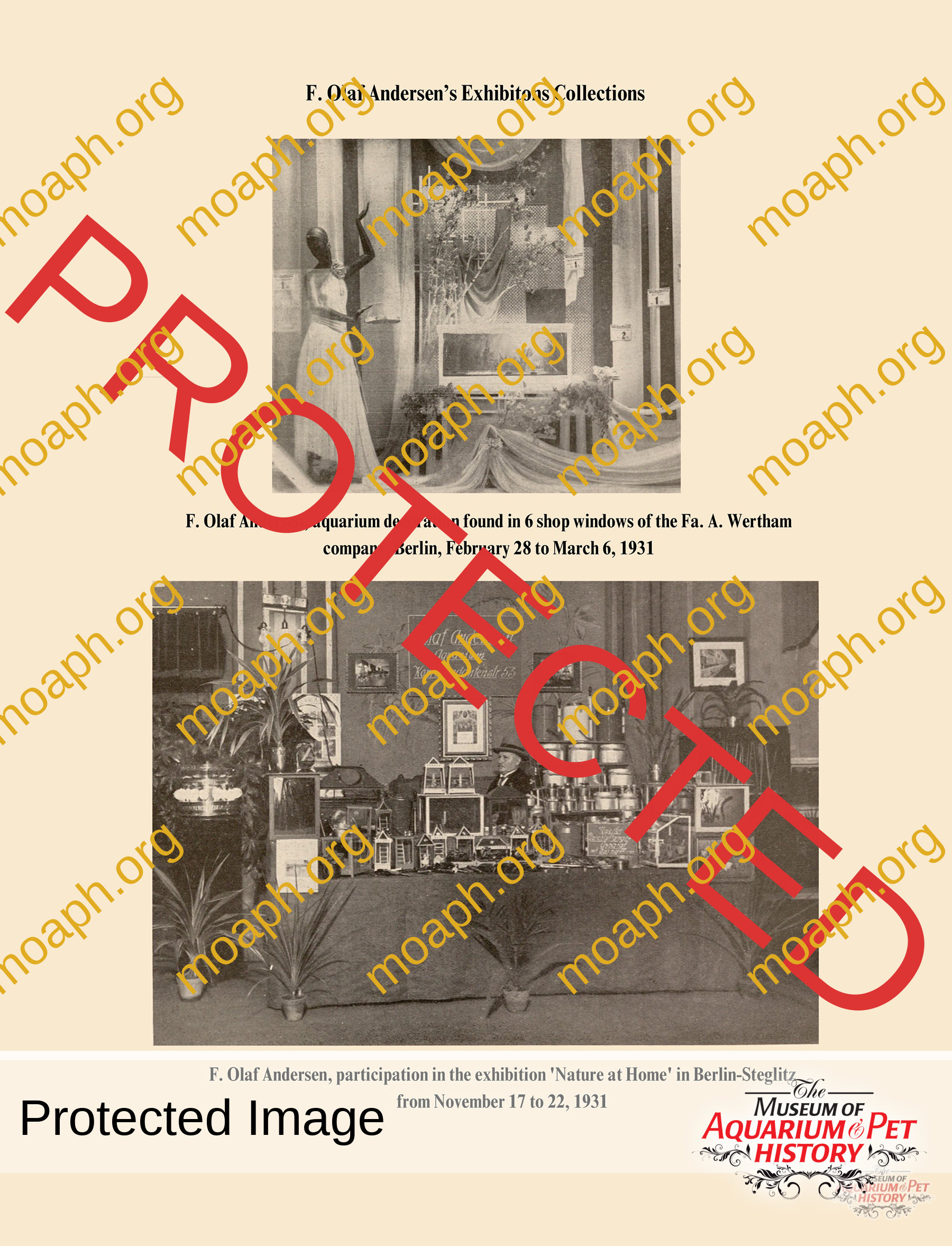 1931 flyer from tropical fish dealer F. Olaf Anderson of Berlin-Stezlitz, Germany. Notice the many exhibits and store fronts his company participated in.