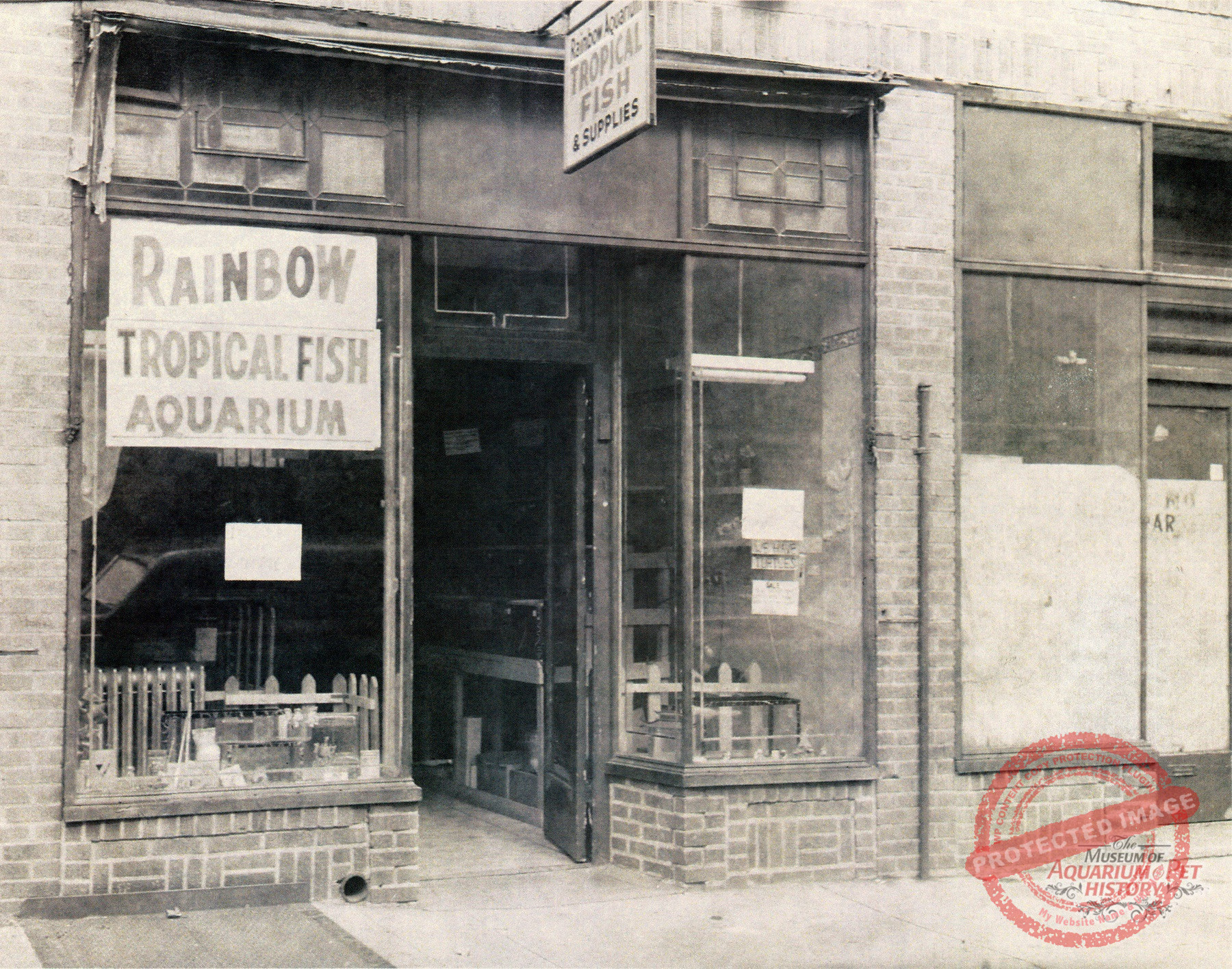 Three photos from “Rainbow Aquarium Tropical Fish & Supplies”. Notice the aquarium stands and splatter tank aquariums! Images look to be from the 1950s era. Does anyone know anything about this aquarium store?