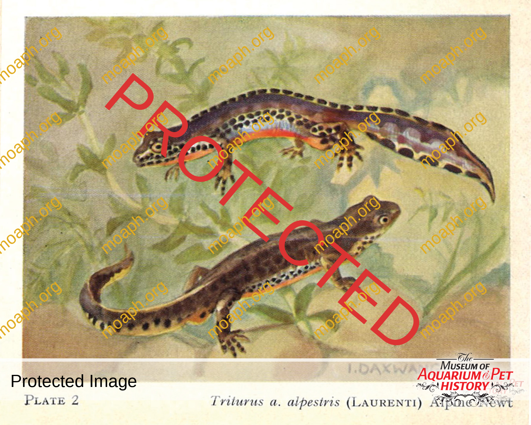 It is the most beautiful water salamander, far more beautiful than the previous one, with which it was otherwise probably confused. But it differs very clearly in that it only has a moderately long, broad, and blunt tail, its underbody is a solid orange-red, and it has a light blue stripe with nice black dots on the sides of its body, which is not so obvious on the female, and that all you can see on the male when he is in the water is a low toothless dorsal crest.