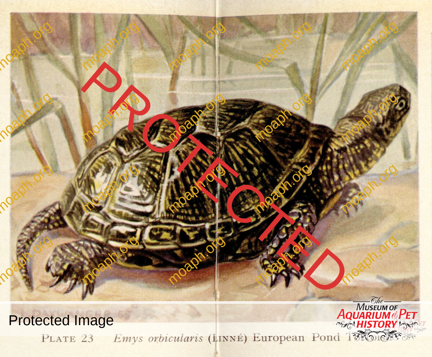 Emys orbicularis (European pond turtle) from Reptiles and Amphibians of Europe, written by Walter Hellmich, and illustrated by Irmgard Daxwanger.