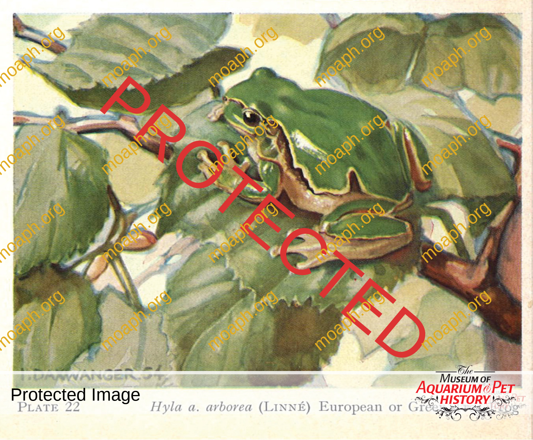 This cute little frog, which is particularly recommended for the rare purity of the skin and its colors and its delicate build, measures about an inch and a half in body length. The upper body is green, the lower body yellowish white, and this is covered with small, raised warts, which are nothing other than glands that contain a caustic moisture: because if you catch a tree frog with your bare hands and touch your eyes without washing (which I have often encountered), the moisture that is expressed will bite you painfully for a long time.