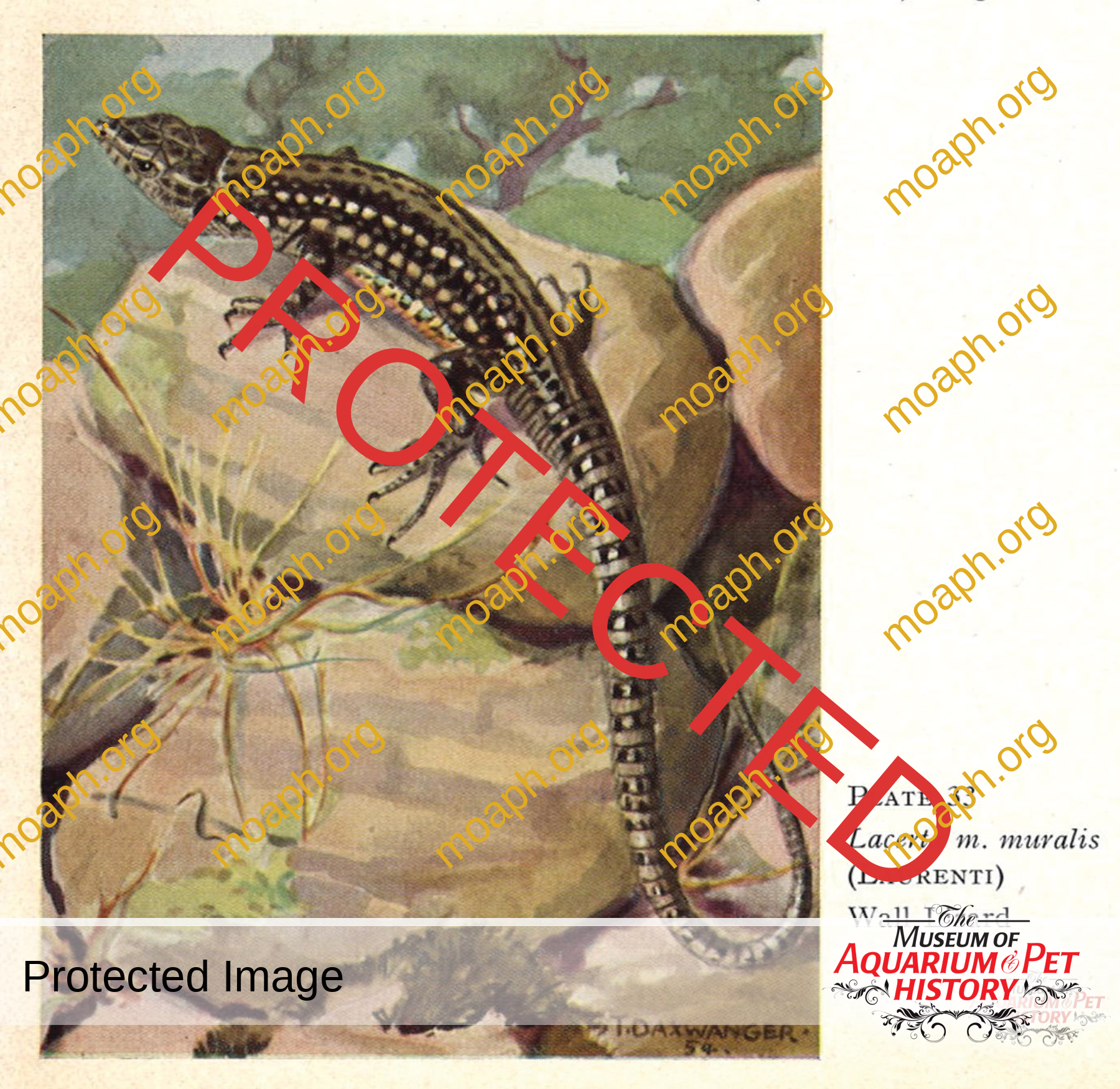 Lacerta m. muralis (wall lizard) from Reptiles and Amphibians of Europe, written by Walter Hellmich, and illustrated by Irmgard Daxwanger.