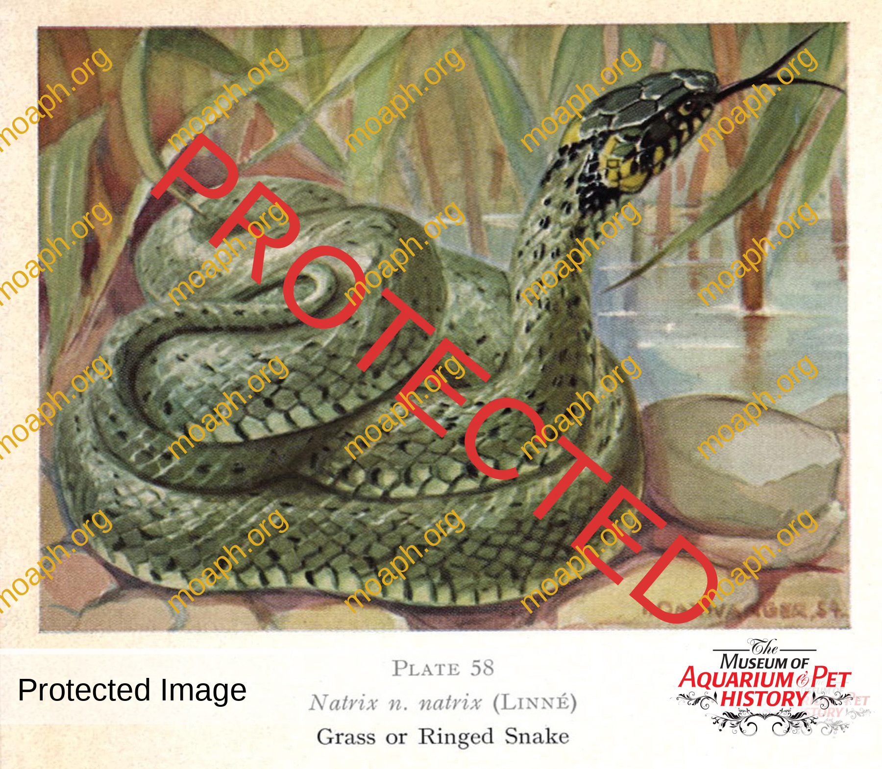 Natrix n. natrix (grass snake) from Reptiles and Amphibians of Europe, written by Walter Hellmich, and illustrated by Irmgard Daxwanger.