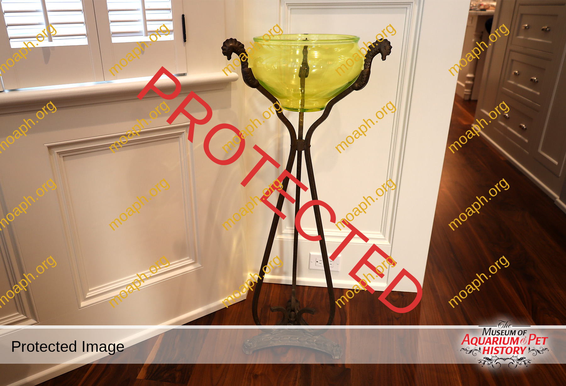 Arts & Crafts Seahorse Stand with Original Vaseline Bowl