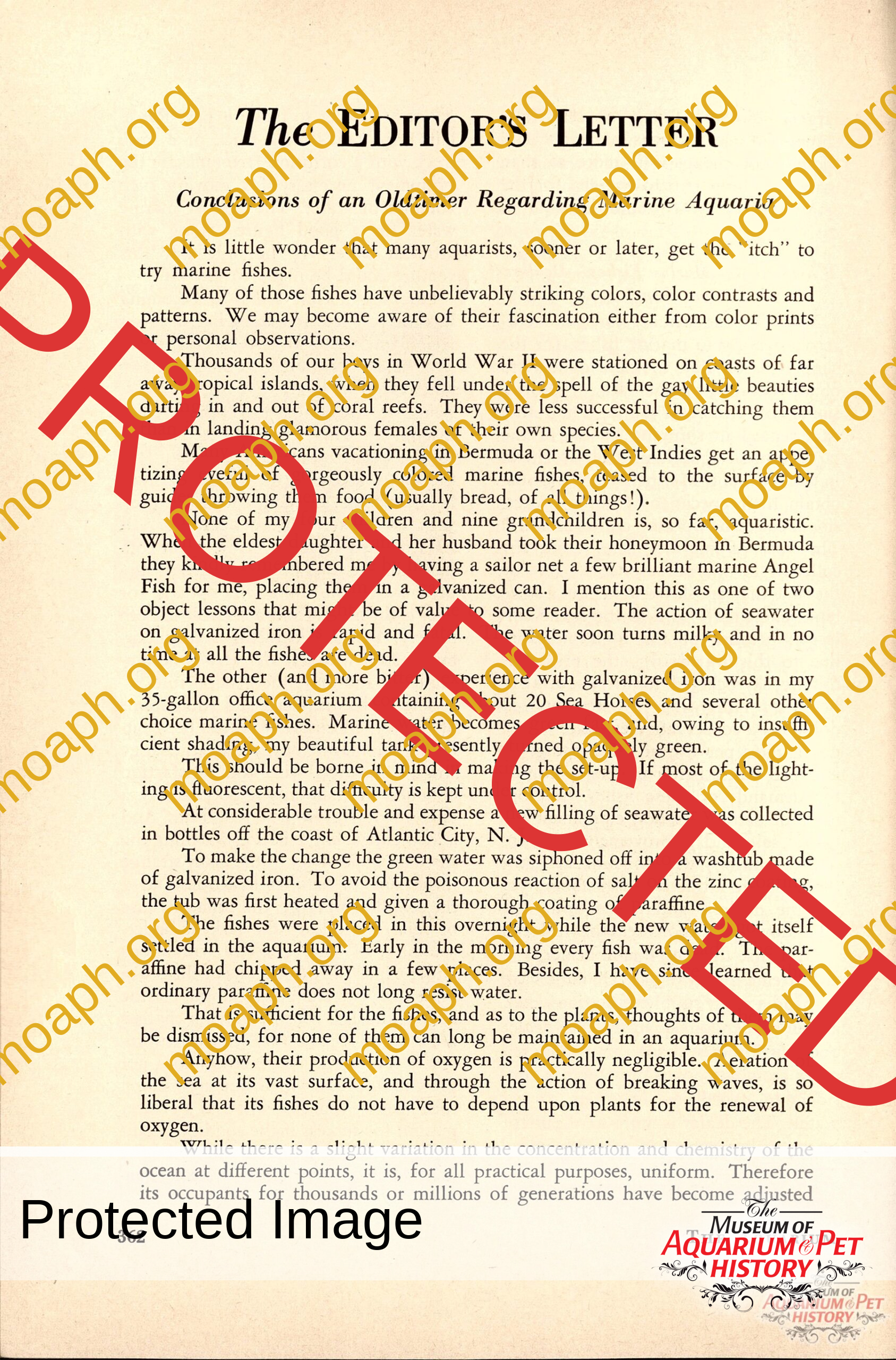 The Editor’s Letter: Marine Fishkeeping in 1953